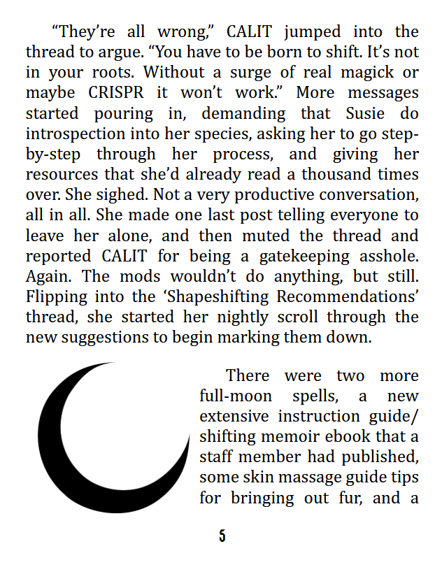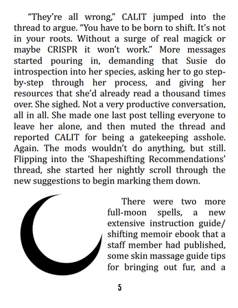 Inspired by the therianthropic wing growing & physical shifting forums of the early 2000's and Goosebumps-style comedy horror, Moon Flower is a 2000-word quarter zine. This download includes both PDF versions for the web and a formatted 16-page minizine PDF. For best results, print on heavier weight paper with borderless duplex (flip short side) settings.