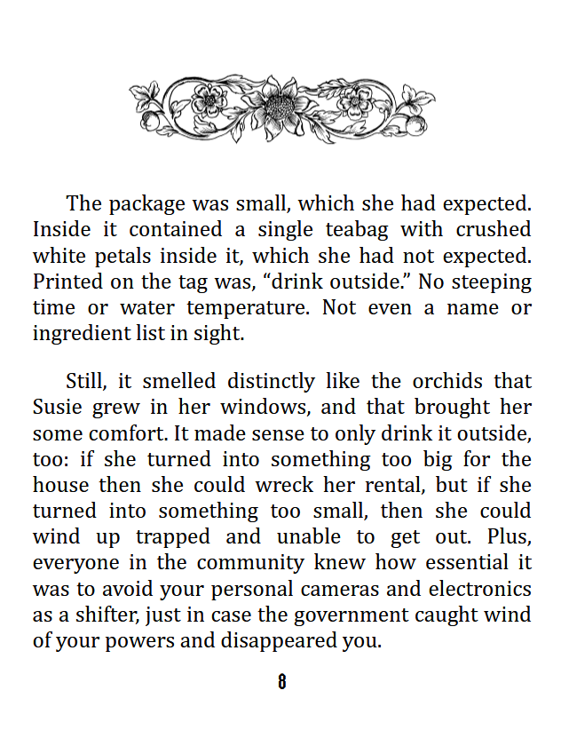 Moon Flower is about a girl with a goal: to finally, after so many years of trying, unleash her full potential and transform into the beautiful wolf she knows she (probably) is. Susie is frustrated with the shoddy internet spells she's found so far, but when a stranger on a forum offers her something new, she eagerly accepts-- after all, all magic's safe with the right intent...