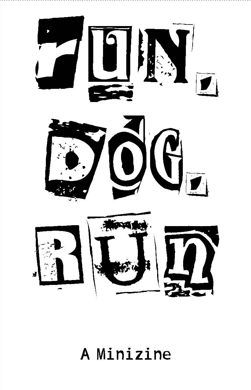 RUN, DOG, RUN is a printable minizine about a man who has never been a wolf. Or is it about a wolf, who has never been a man? Or perhaps it is about multiple wolves, none of whom have ever been men.